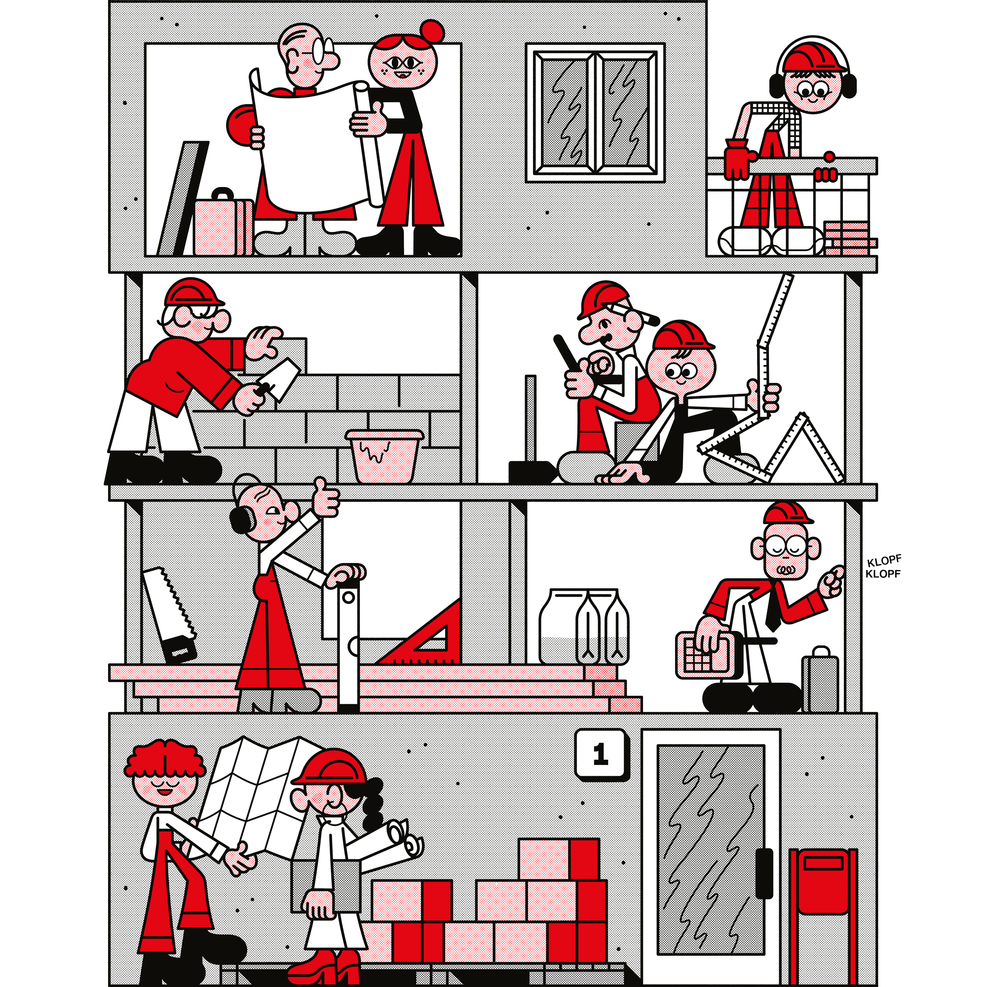 Illustration for Social Design Award 2018, a reader’s competition hosted by SPIEGEL Online and SPIEGEL Wissen (in cooperation with Bauhaus), looking for ideas and projects for creating a vibrant neighborhood.